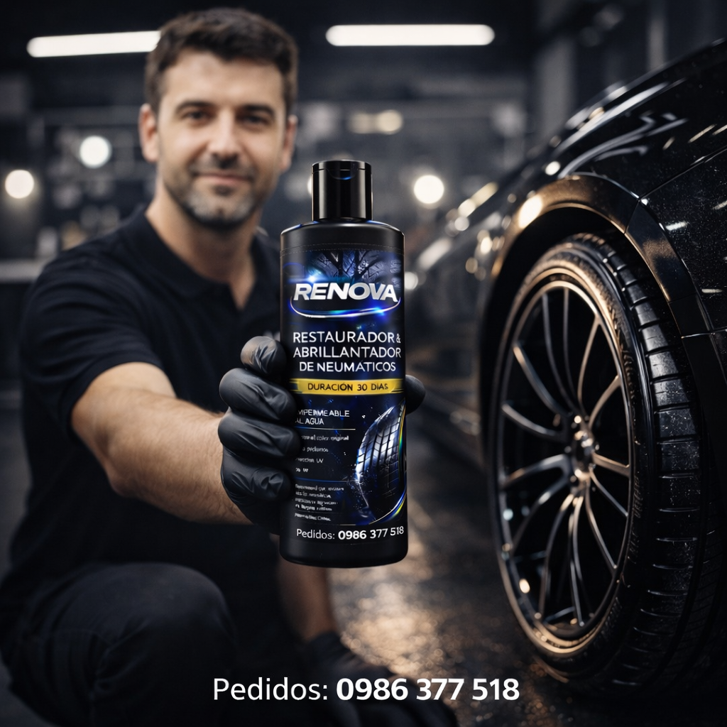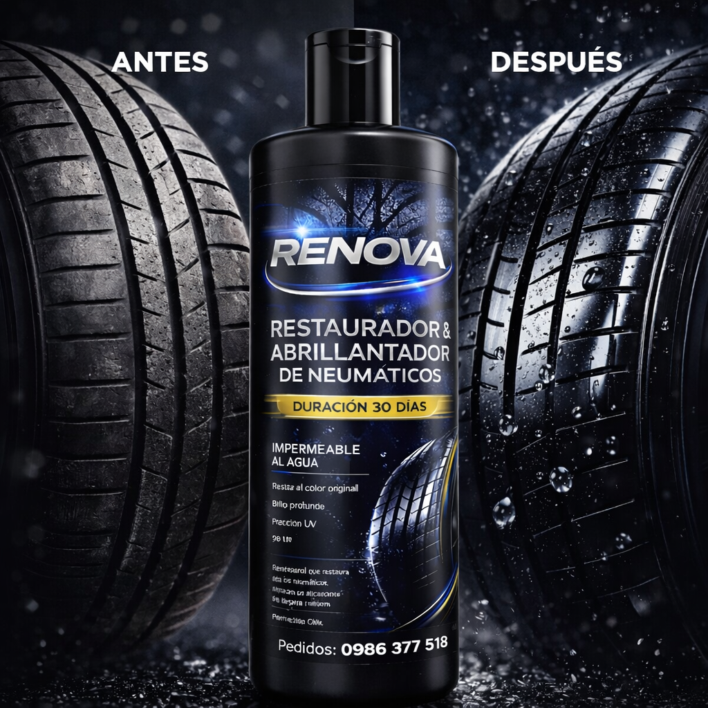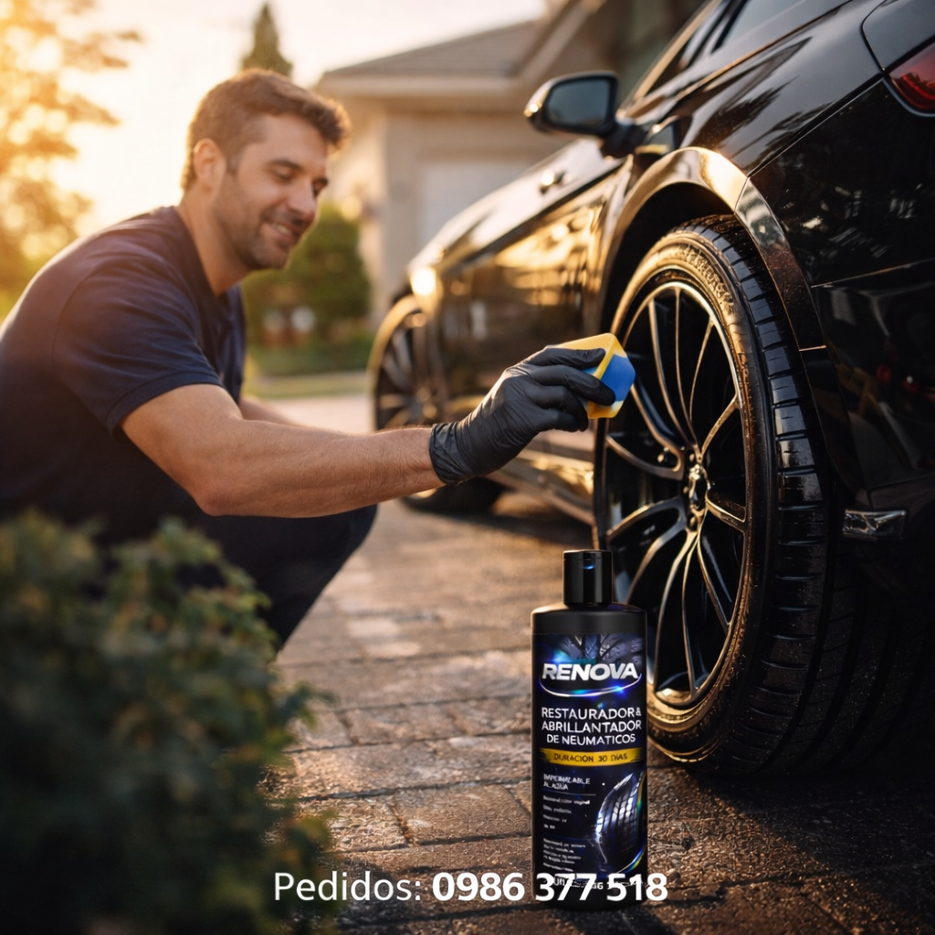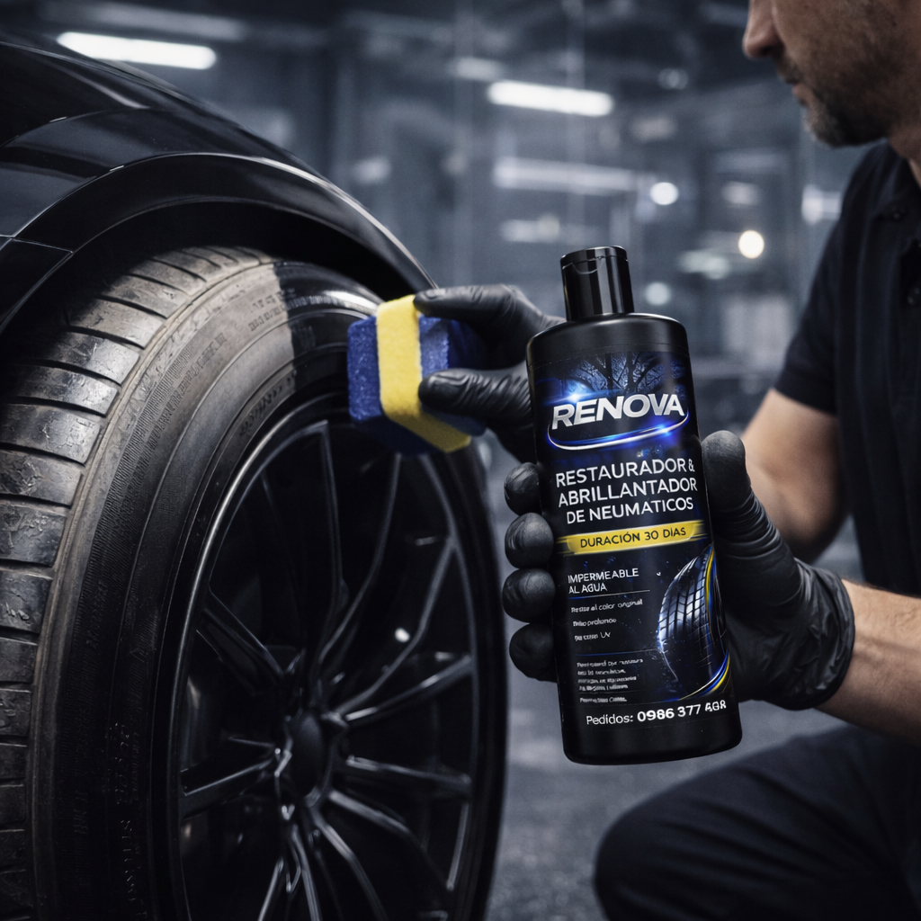 Restaura el negro profundo, protege el caucho y mantiene el brillo hasta 30 días garantizados, incluso con lluvia o lavados frecuentes.